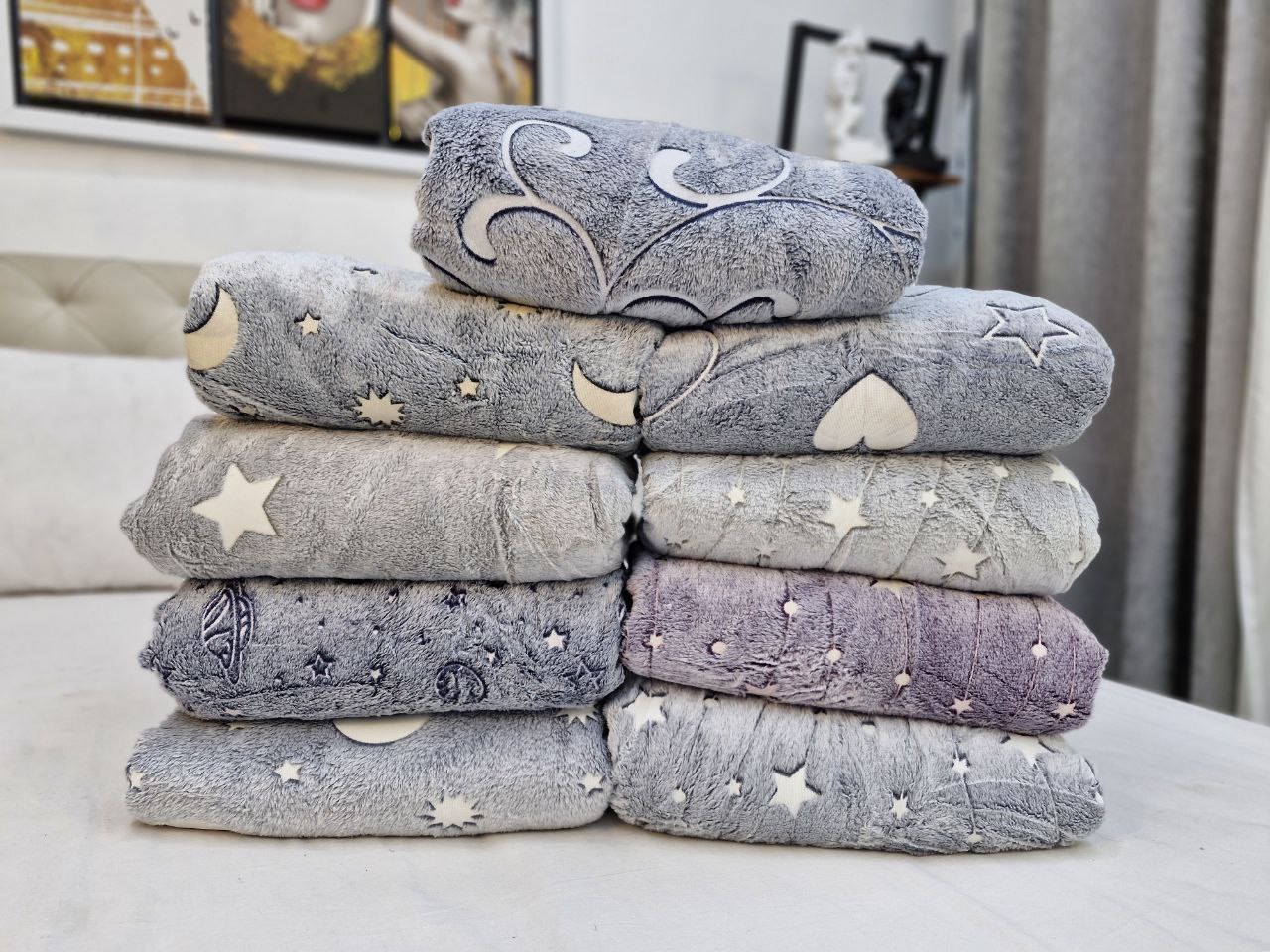 پتو مسافرتی خارجی طرح شب نما در سایز دو نفره (۲۰۰×۲۴۰) با کیفیت عالی و بی نظیر در رنگها وطرح های مختلف که از خاصیت شبنمایی بر خوردار است و با قرار گرفتن زیر نور لامپ در منزل نور را به خود جذب و موقع تاریکی منزل و اتاق این خاصیت رانمایان میکند و بسیار جذاب و دوست داشتنی مخصوصا برای کودکان و نوجوانان میباشد