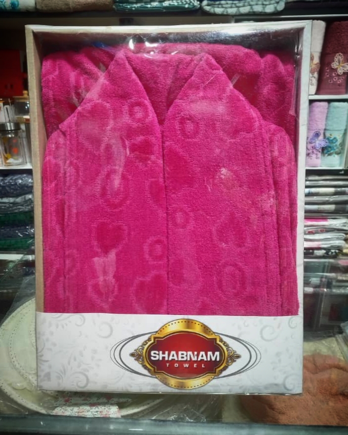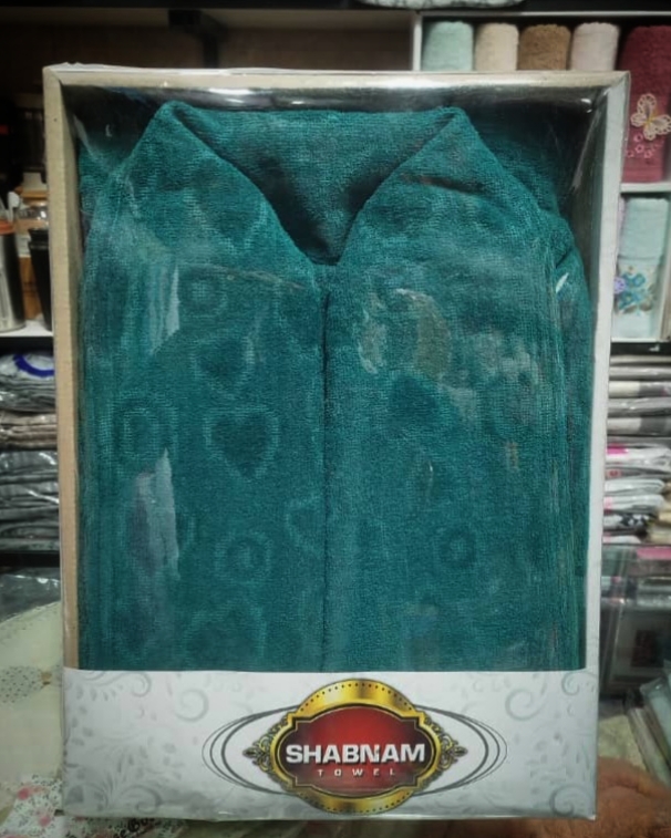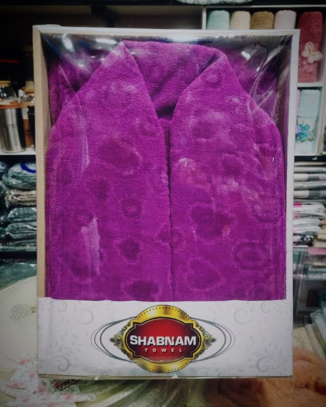 حوله پالتویی شبنم دارای چهار رنگ متفاوت با کیفیت عالی و قیمت بی نظیر. حوله دارای سایز ۱۲۵ سانت میباشد که بیانگر قد حوله از سرشانه است که قد کامل حوله را به همراه کلاه حوله به ۱۵۰ سانت میرساند و از نظر قواره ای مناسب افراد تا حداکثر وزن ۹۵ کیلوگرم میباشد. کیفیت محصول با دارا بودن وزن ۱۲۰۰گرم که بیانگر بافت ریز و متراکم حوله است به نسبت قیمت محصول واقعا عالی و بی نظیر است